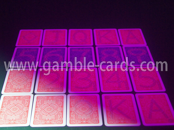 Modiano Decks mit Leuchtmarkierungen sind speziell für eine beeindruckende Leistung ausgelegt! Modiano Karten sind 100% Plastik Spielkarten, die häufig dauern wird bis zu 50-100 mal länger als papierbasierte oder Kunststoff beschichtete Spielkarten . 100% Plastikkarten sind abwaschbar, Crimp-und lichtbeständig, wasserdicht und extrem langlebig.